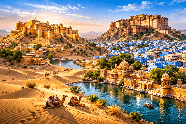 Rajasthan is the land of royal forts, desert landscapes, colorful markets, and beautiful palaces. From the Pink City of Jaipur to the Golden sand dunes of Jaisalmer, this journey shows the true culture of Rajasthan. Our jaipur bikaner jaisalmer jodhpur udaipur tour offers a complete experience of history, heritage, and traditional Rajasthani lifestyle.